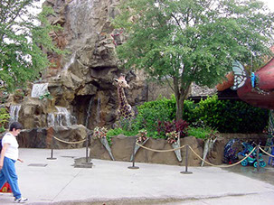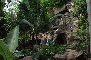 At the entrance to Animal Kingdom we created a waterfall that is 60 feet high and 300 feet wide with a flow of over 25,000 gallons per minute. The volcano sits on top of the 700 seat, 30.000 sq. ft. restaurant.