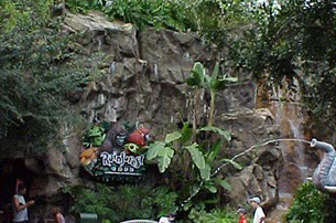 At the entrance to Animal Kingdom we created a waterfall that is 60 feet high and 300 feet wide with a flow of over 25,000 gallons per minute. The volcano sits on top of the 700 seat, 30.000 sq. ft. restaurant.