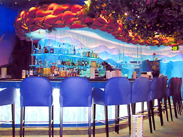 75 foot erupting volcano with waterfall over the 600 seat, 25,000 square foot restaurant.